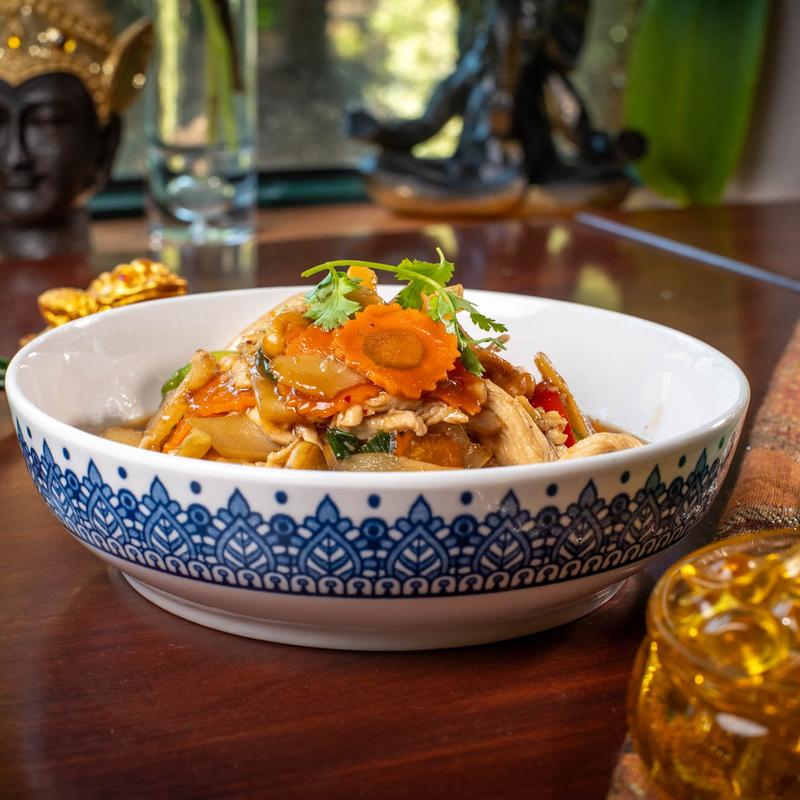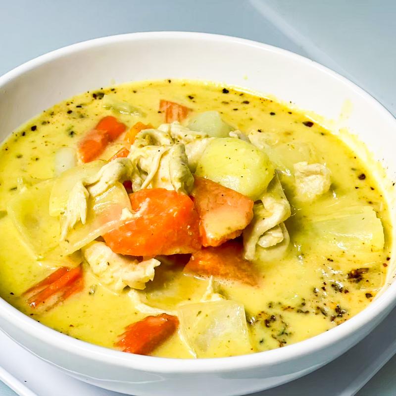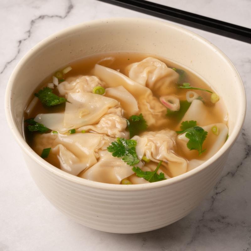 Chicken wonton, carrots, green and white onion & cabbage in chicken broth.