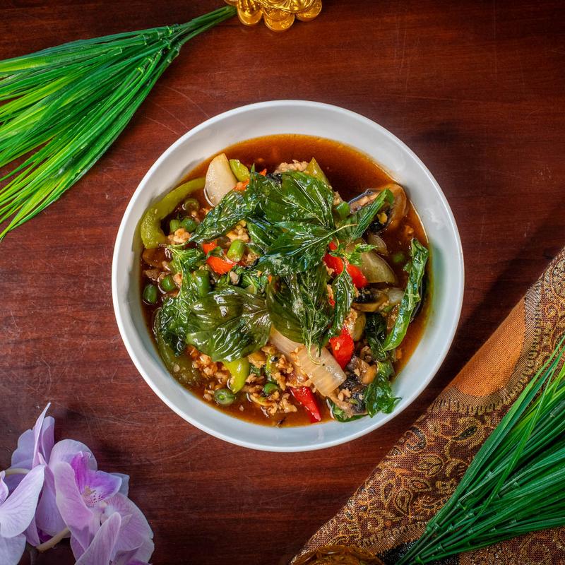 Shredded green papaya, carrots, garlic, tomatoes, Thai chili peppers, with a touch of spicy lime juice.