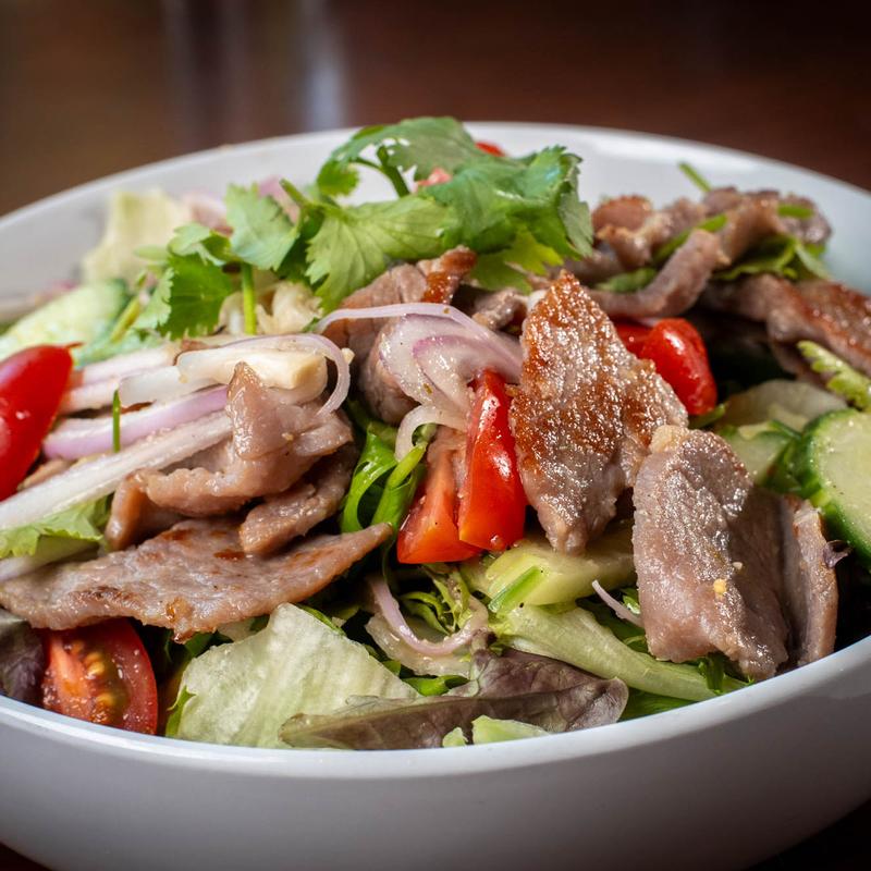 Grilled beef tossed with spicy lime juice served over spring mix.