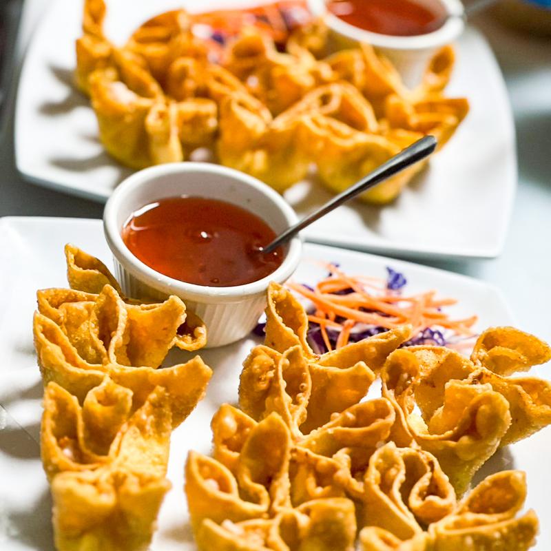 Fried crab wonton crispy wonton stuffed with crab meat & cream cheese, served with sweet chili sauce.