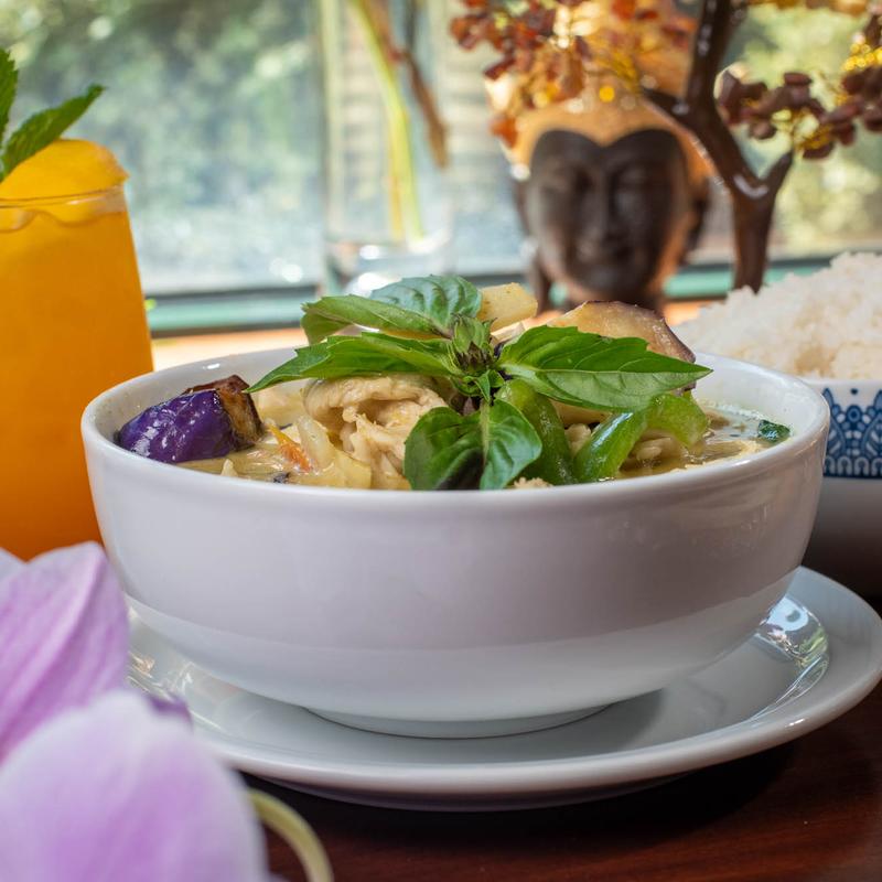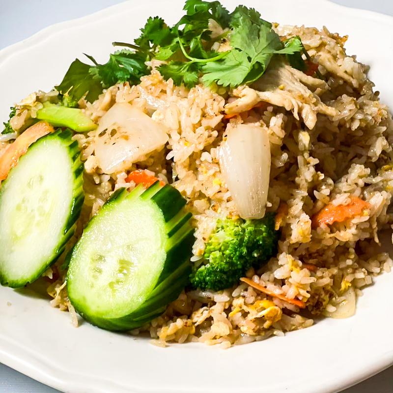 Grilled chicken skewers, marinated in coconut milk, turmeric, served with peanut sauce & cucumber salad.