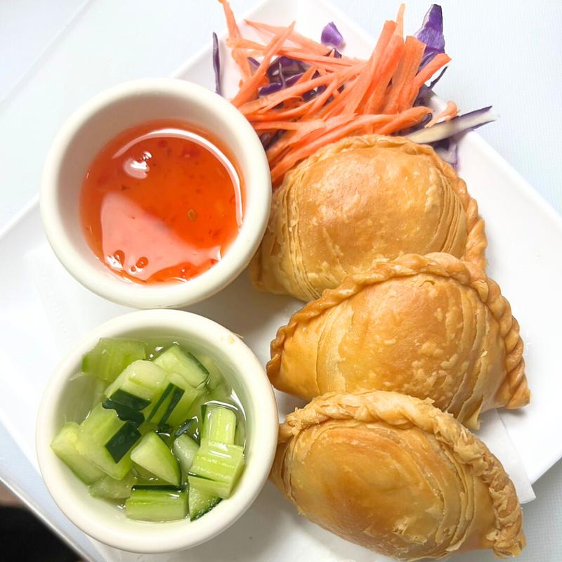 Choice of filling wrapped in puff pastry dough, deep fried.