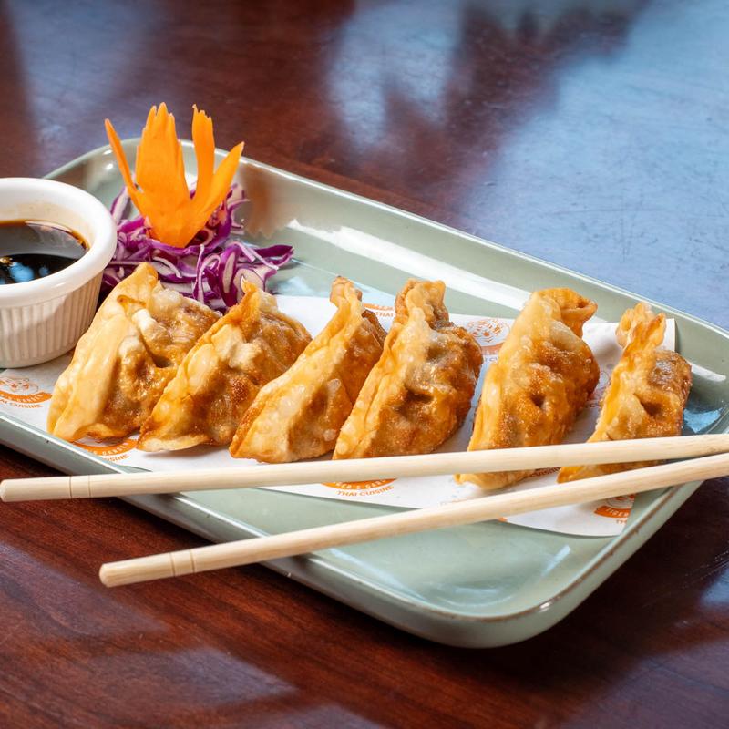 Chicken & vegetables wrapped in dumpling paper served with sweet soy sauce.